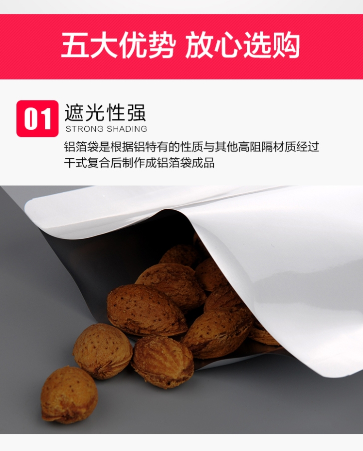 鋁箔袋一般都是復合包裝袋,其應用十分廣泛,在生活中我們隨處可見鋁箔袋的身影,它比較適用于大型精密機械設備、食品和化學原料的包裝。